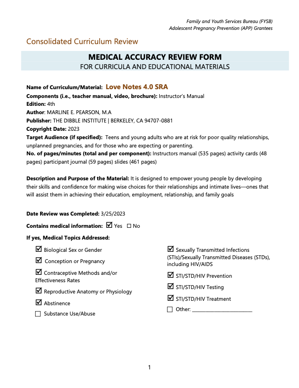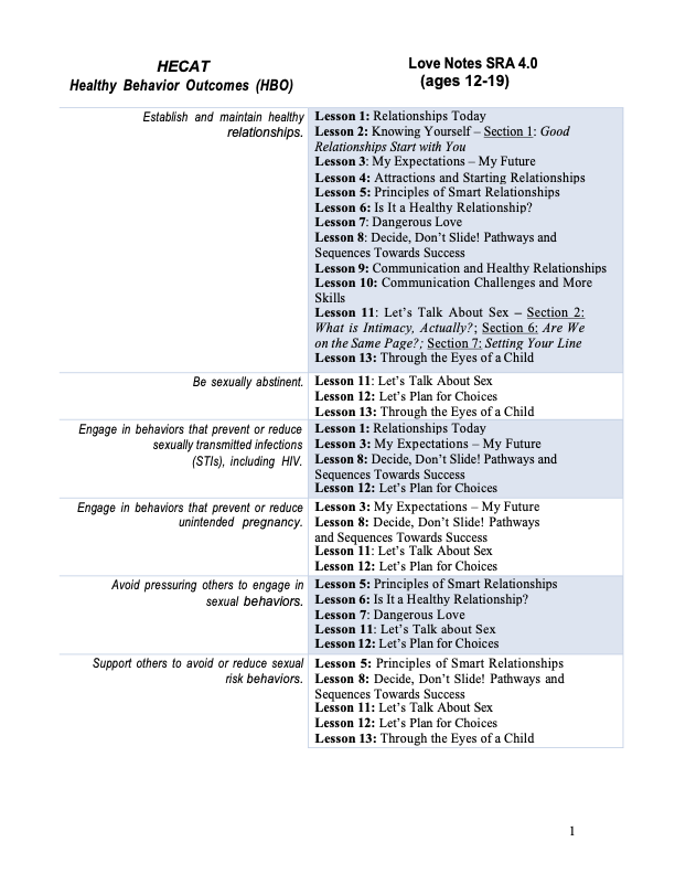 Love Notes Sexual Risk Avoidance Adaptation (SRA) is the version of Love Notes that meets all the criteria of this funding announcement as it complies with SRA criteria and is evidence based.
