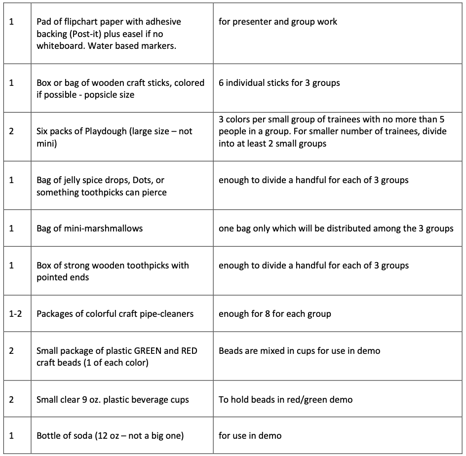 - Add icebreakers or energizers at the start of each session or between modules if delivering during an extended period of time.
