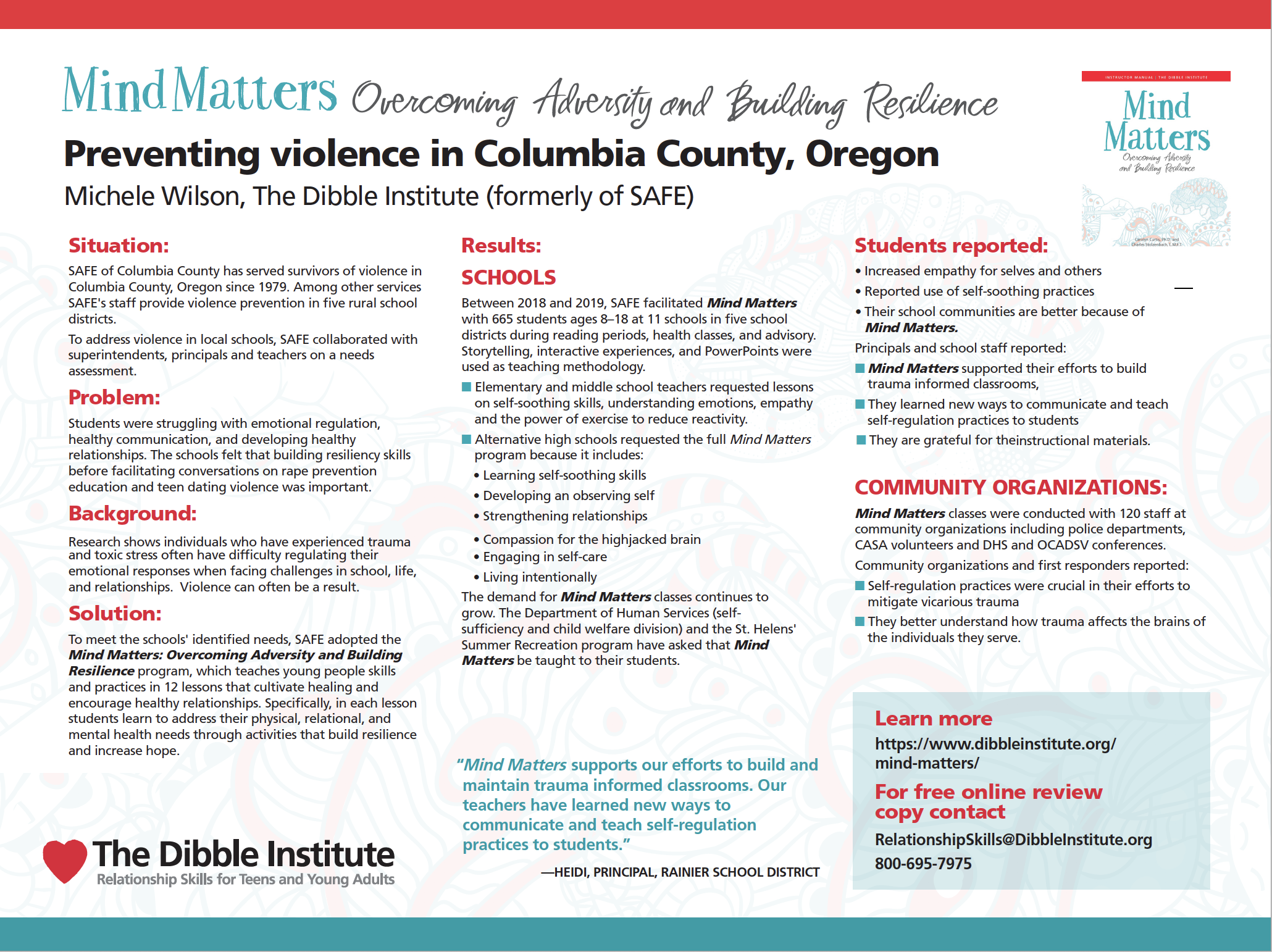Teachers and counselors are very grateful for the instruction. They have asked SAFE to modify Mind Matters to meet additional classroom and student needs.